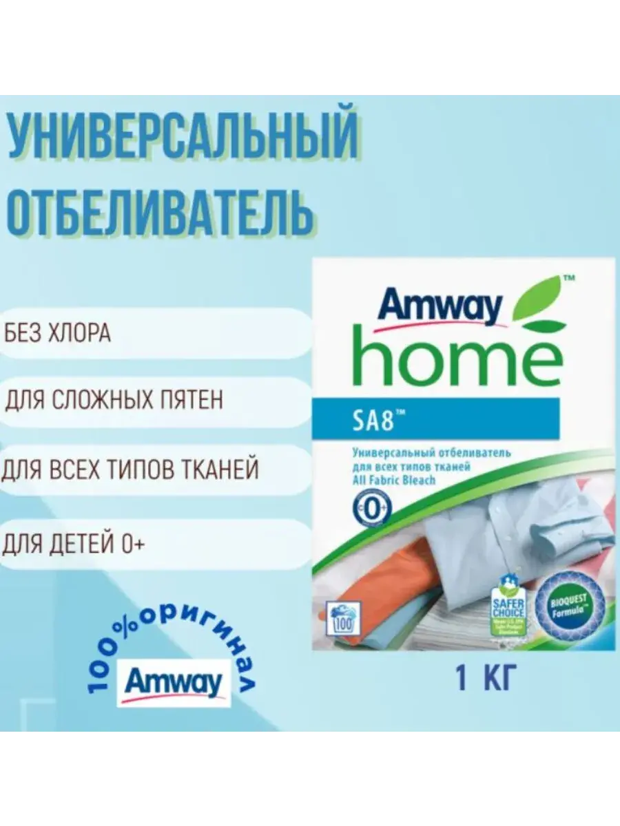 Усиливает действие обычного стирального порошка и с помощью активного кислородного отбеливателя эффективно удаляет трудновыводимые пятна с белых и цветных тканей при любой температуре.**Преимущества:**многоцелевое средство: можно использовать для очистки поверхностей кухонной мебели и удаления пятен танина и кофеина с чайной и кофейной посуды;экономично расходуется благодаря концентрированному составу;значок BIOQUEST Formula на упаковке свидетельствует, что средство содержит высокоактивные ингредиенты, полученные из природных источников, является биоразлагаемым концентратом, безвредным для человека и природы, а также прошло дерматологическое тестирование;не содержит фосфатов, красителей, ЭДТК и нитрилтрехуксусную кислоту;безопасен для систем канализации;гипоаллергенно, не вызывает негативных проявлений со стороны кожных покровов и органов дыхания. амвей/отбеливатель амвей/порошок амвей/стирка/отбеливатели