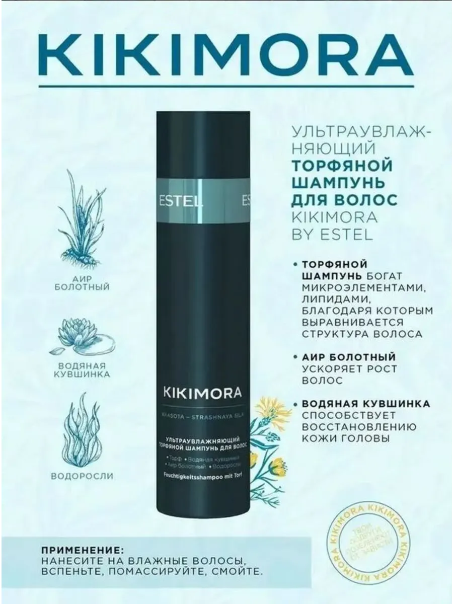 Профессиональный шампунь для волос увлажняет все слои волоса, выравнивает структуру, ускоряет рост прядей и способствует восстановлению кожи головы. Торф смягчает эпидермис, устраняет воспаления, раздражения и зуд, предотвращает появление перхоти и насыщает пряди ценными витаминами и минералами, возвращая им упругость и мягкость. Экстракт аира болотного укрепляет фолликулы, способствуя росту и препятствуя выпадению волос, придаёт локонам гладкость и сказочный блеск. Экстракт водорослей нормализует гидро-липидный баланс, восстанавливает структуру, защищает локоны от вредных внешних факторов, активизирует рост и предотвращает выпадение, благодаря чему причёска обретает густоту и объём. Экстракт водяной кувшинки интенсивно увлажняет пряди и активизирует регенеративные процессы, делает локоны более плотными, сильными и эластичными, предотвращает ломкость и тусклость. Уходовая косметика этой линейки подходит женщинам с разным типом волос: прямые, волнистые, вьющиеся, сухие и окрашенные. Также шампунь представлен в объеме 250 мл. KIKIMORA - магическая лимитированная серия для природной сверх силы волос. Estel - российский бренд профессиональной косметики, который предлагает широкий ассортимент продукции для ухода за волосами, а также услуги окрашивания волос и химической завивки. СПОСОБ ПРИМЕНЕНИЯ: нанесите на влажные волосы шампунь Кикимора, вспеньте, помассируйте, смойте.
