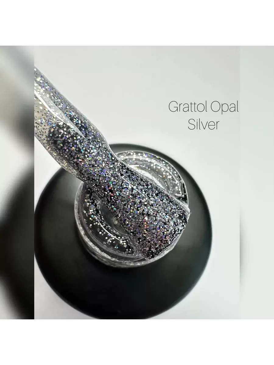 Гель-лак Grattol Opal Silver с гологафическими блестками - на прозрачной основе с большим количеством мерцающего глиттера. Гель-лак Opal Silver - универсален, его можно наносить как самостоятельный цвет, так и на любую цветную подложку. При искуственном свете эффект мерцания наиболее выражен.
