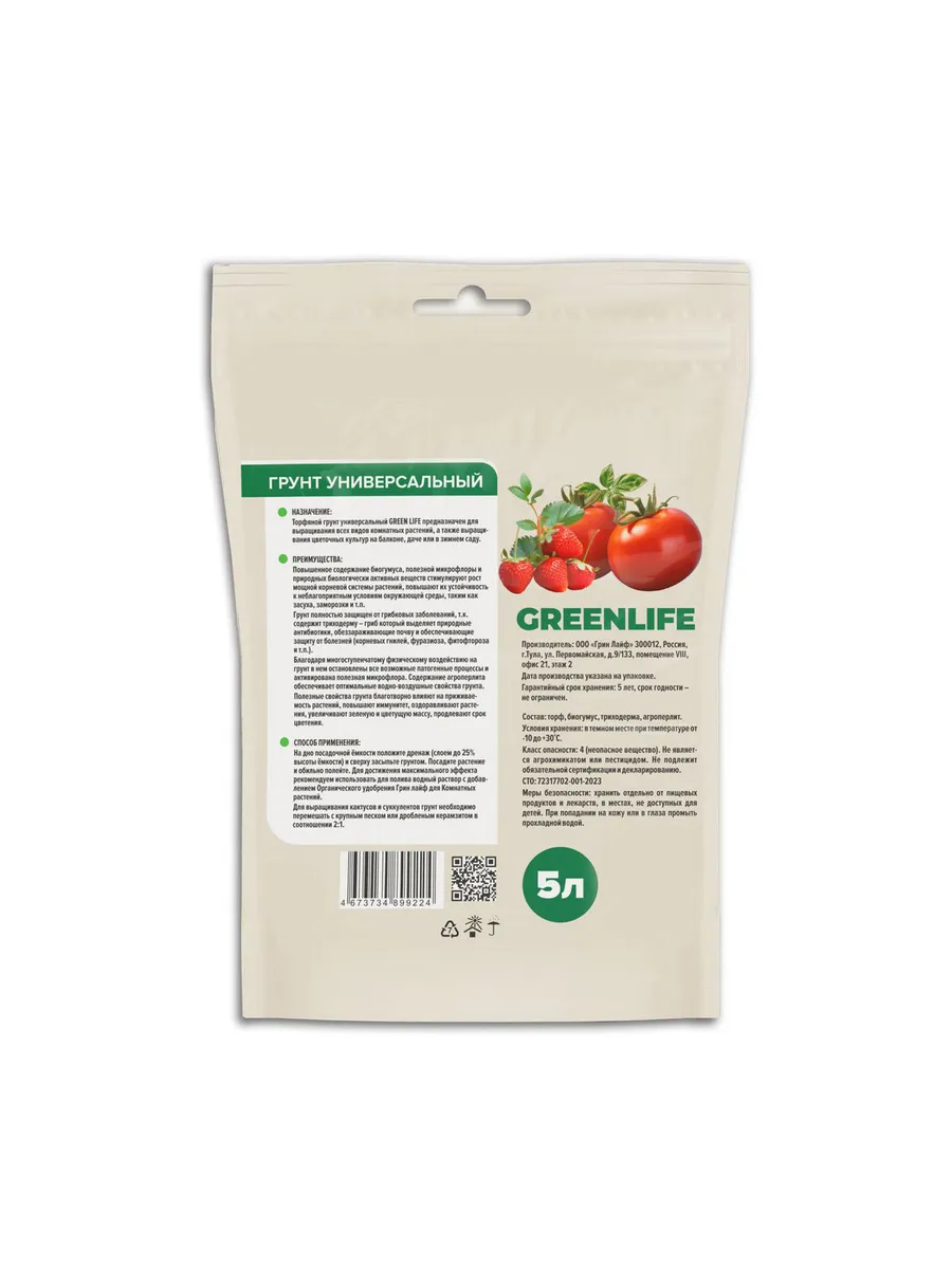 Грунт универсальный GREEN LIFE полностью готов к применению.
