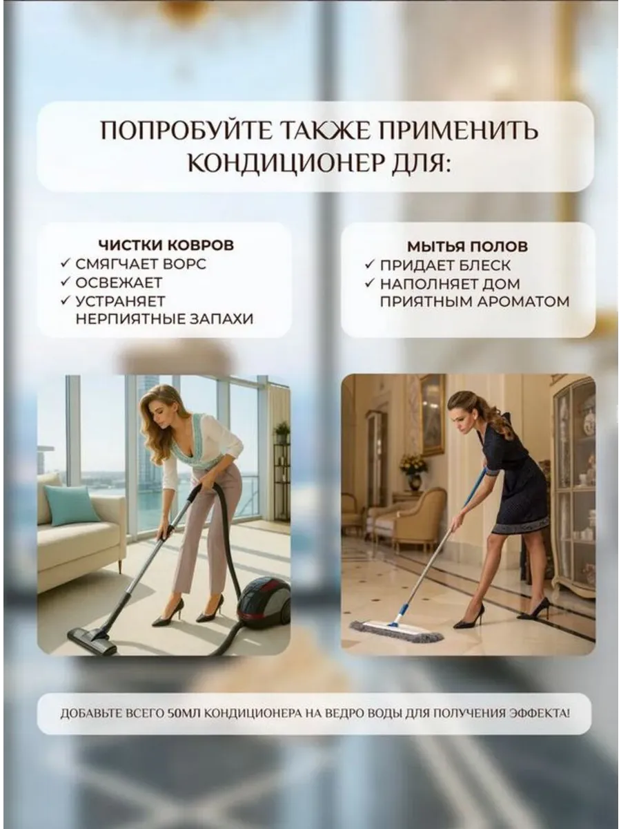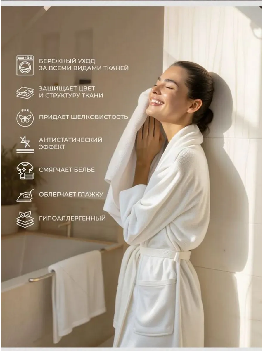Совместное применение с любым гелем для стирки позволяет добиться максимального результата: чистота, мягкость и стойкий парфюмированный шлейф. После стирки белья аромат сохраняется на одежде и постельных принадлежностях, создавая атмосферу уюта и стиля.