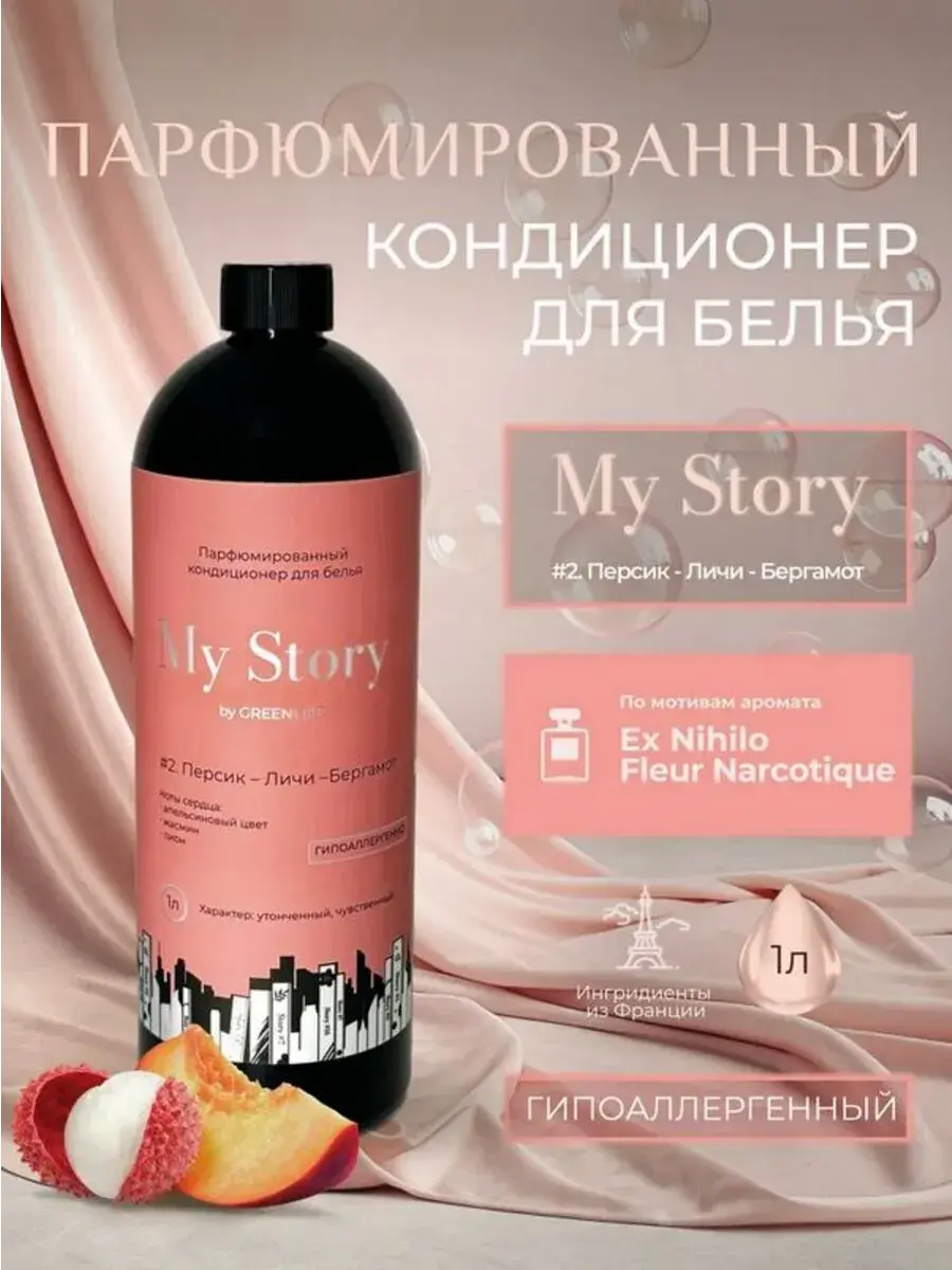 Выбирая парфюмированный кондиционер для белья My Story by Green Life, вы дарите тканям деликатный уход и создаете особое настроение через парфюмерный шлейф. Это не просто средство для стирки белья, а элемент стиля, который отражает вашу индивидуальность.