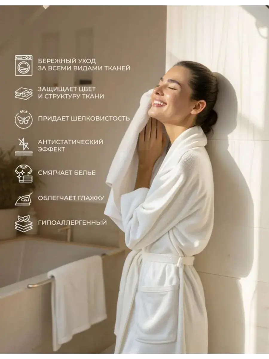 При использовании геля и кондиционера для стирки одновременно достигается максимальный эффект свежести и мягкости. Такой уход особенно важен для стирки черного белья: кондиционер помогает защитить насыщенные оттенки от потускнения, сохраняя глубину цвета. Подходит как для стирки белья светлого, так и темного, обеспечивая одинаково бережный результат.
