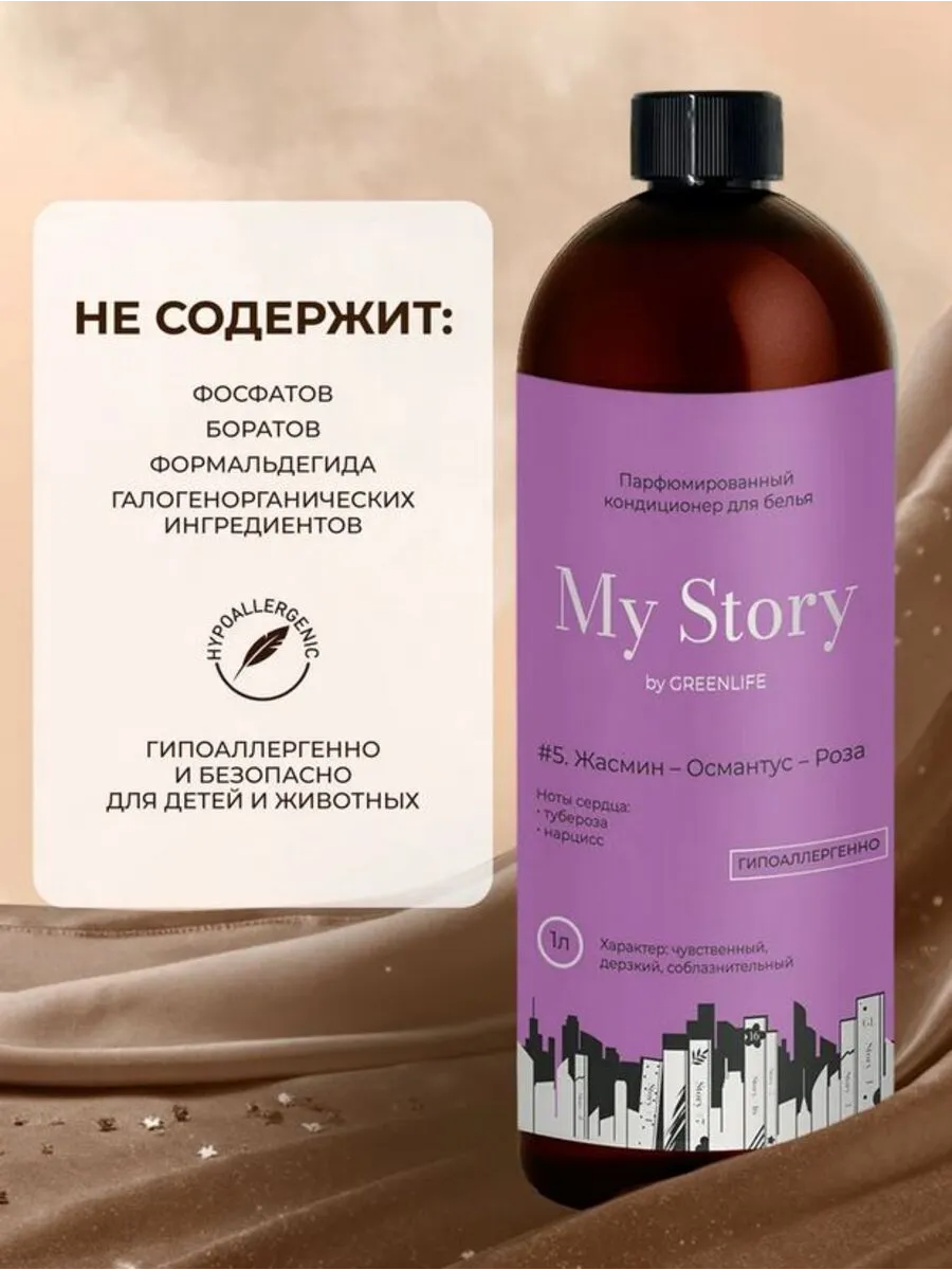 Выбирая парфюмированный кондиционер для белья My Story by Green Life, вы не просто заботитесь о тканях, вы создаёте атмосферу комфорта и стиля.