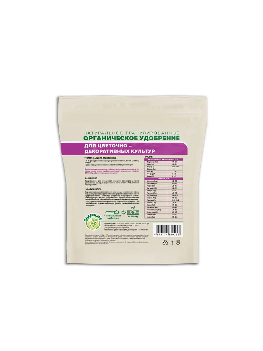 Предназначено для прикорневой подкормки всех видов цветочно-декоративных культур, выращиваемых на любых почвах, в любых климатических условиях.