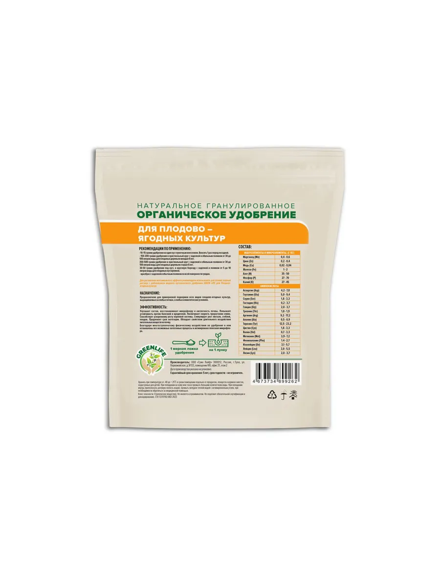 Предназначено для прикорневой подкормки всех видов плодово-ягодных культур, выращиваемых на любых почвах, в любых климатических условиях.