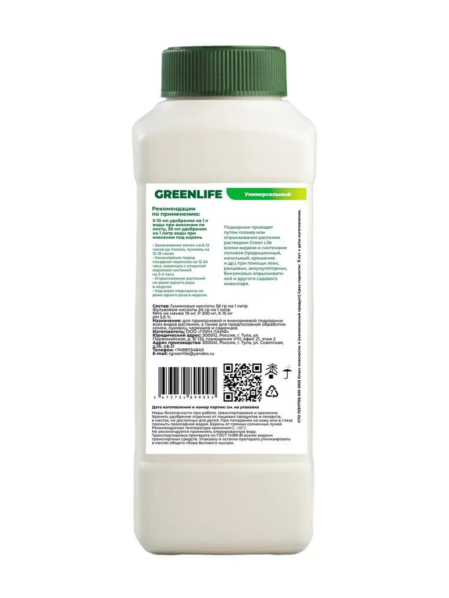 Применение Green Life обеспечивает: повышение урожайности и качества продукции, повышение активности прорастания семян, устойчивость растения к погодным условиям, мощную стимуляцию роста и подкормку растения на всех стадиях вегетации, сильный антистрессовый эффект.