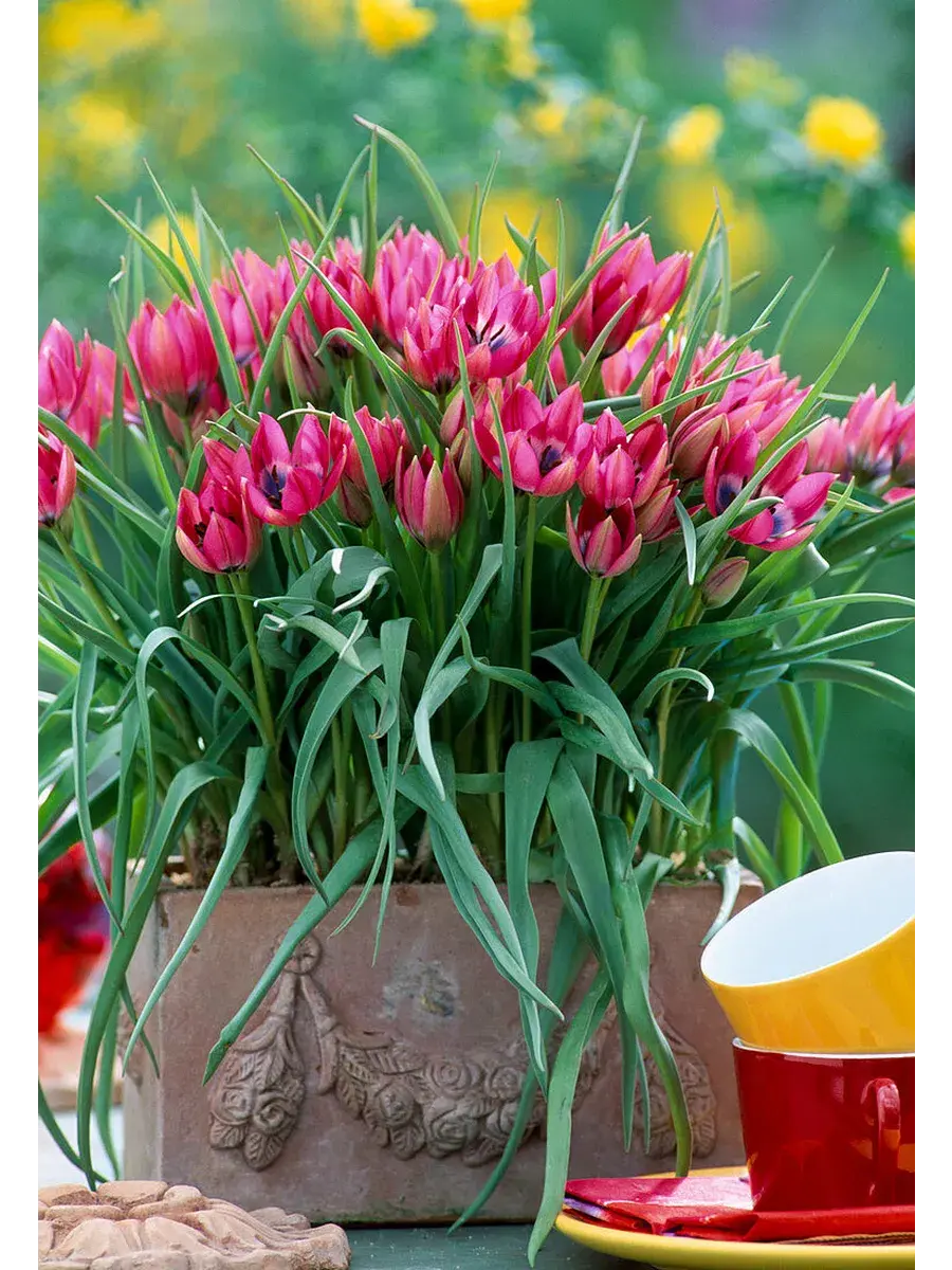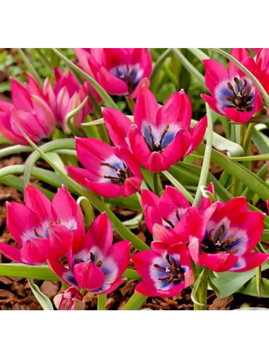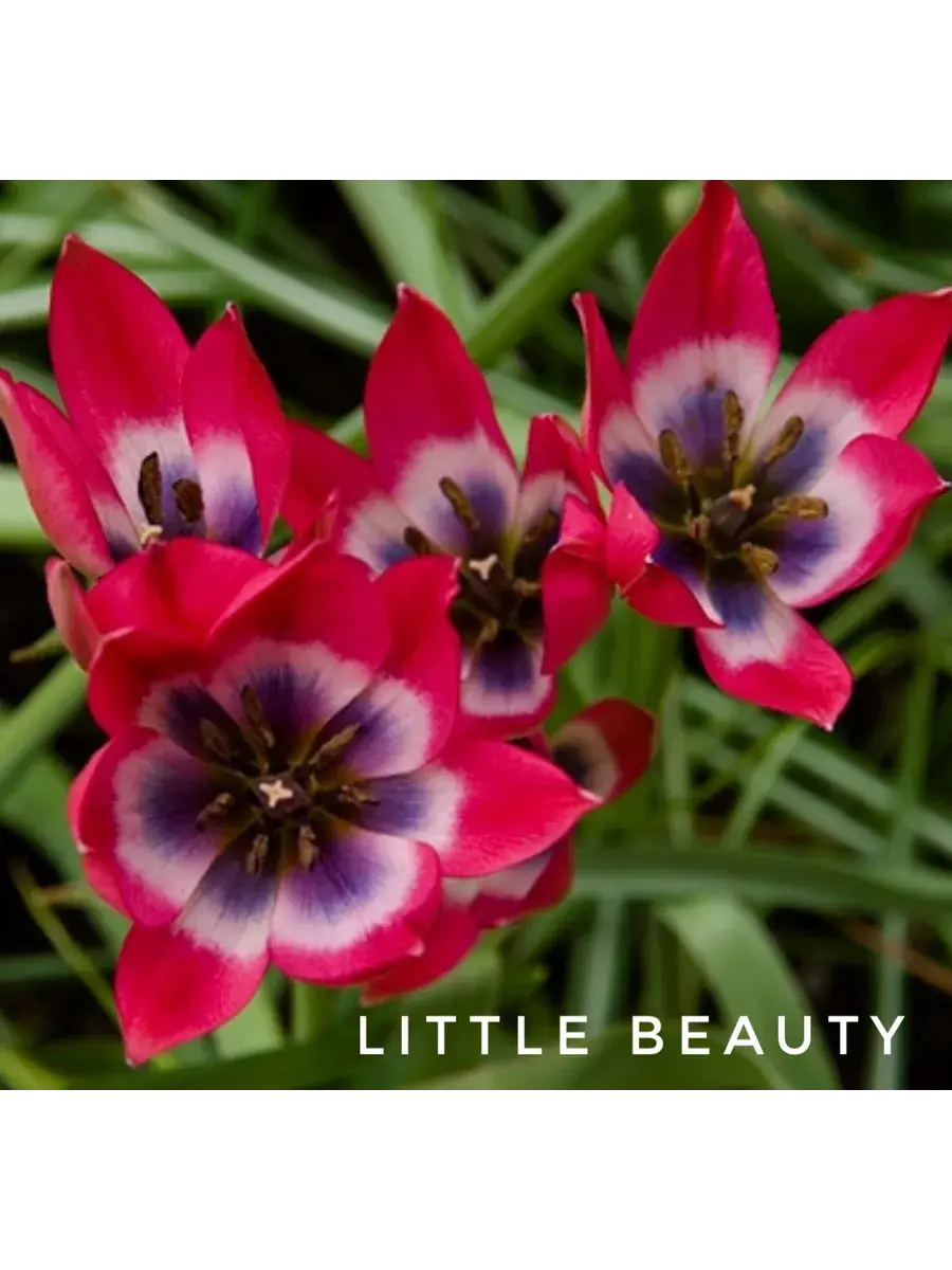 Распускается тюльпан Little Beauty в мае-июне образуя на прочном цветоносе высотой от 20см до 30 см красные рыхлые бутончики высотой около 5см. Когда лепестки расходятся в виде звездочки, становится заметной их удивительная окраска – у основания темно-синяя, переходящая в розовую, а затем в красный оттенок. Продолжительность цветения 10-12 дней благоухая нежным, сладким ароматом. Листья прикорневые, узкие темно-зеленого оттенка, что придает кусту оригинальность.