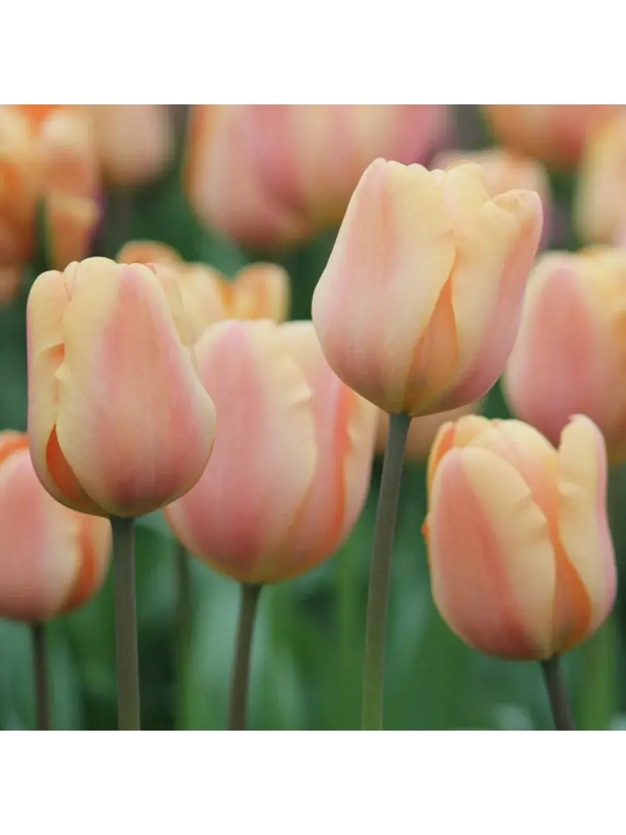 Тюльпан «Mango Charm» - лучший из сортов со светлым цветением. Это многолетнее луковичное растение очень нежное – его бутоны лососевого цвета вызывают восторг даже у самых требовательных садоводов. Бутоны бокаловидной формы настолько аккуратны, что создается впечатление, будто они созданы талантливым скульптором. Цветение дарит очарование в течение нескольких недель.