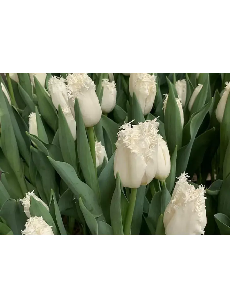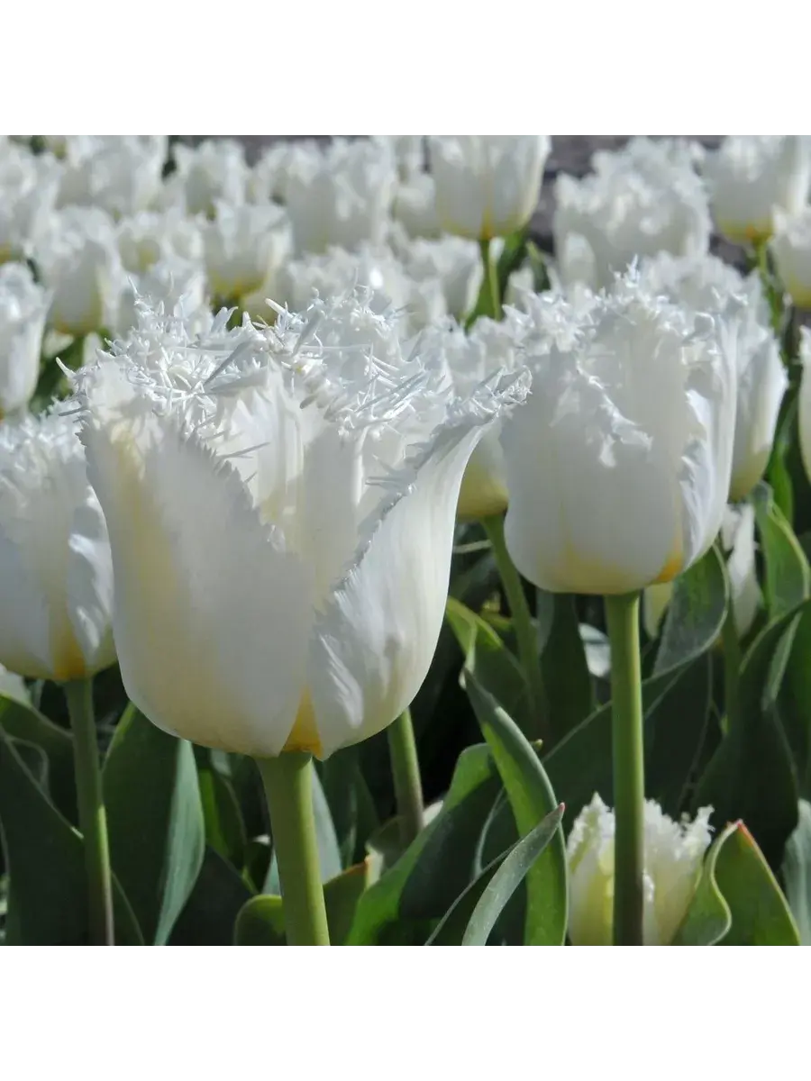 Бахромчатые тюльпаны - отличительная особенность этих тюльпанов - игольчатая бахрома по краям лепестков, напоминающая иней. Высота тюльпанов может варьироваться от 50 до 80см. Окраска цветков встречается самая разнообразная: от белой до фиолетовой, кроме черной. В зависимости от того, какие классы тюльпанов использовались при выведении того или иного сорта бахромчатого тюльпана, различаются размеры цветка, сроки цветения и назначение растений.