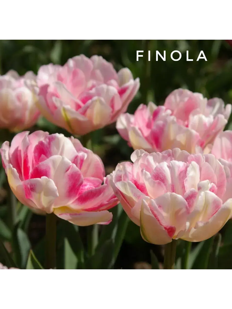 Финола – это поздний сорт махровых тюльпанов. Период вегетации составляет от 80 до 120 дней. Этот цветок можно выращивать как в открытом грунте, так и в специальных контейнерах. Бутон цветка полный, средних размеров. Лепестки имеют нежно-розовый оттенок и овально-закругленную форму. Стебель крепкий устойчивый. Этот сорт относится к низкорослым, высота цветка порядка 40–45 см. Листья имеют продолговатую форму, очень гладкие на ощупь.