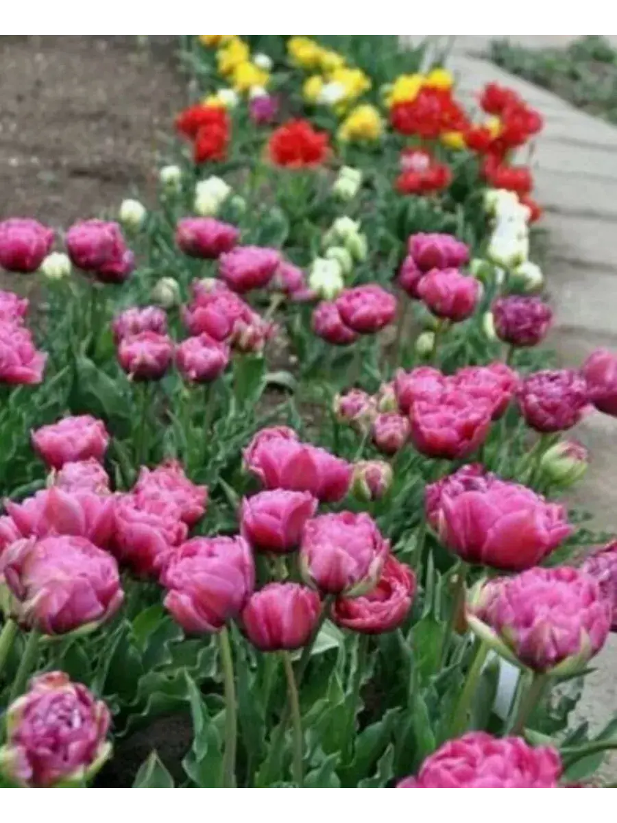 Посадка: тюльпаны высаживают рядами шириной 20–25 см, расстояние между луковицами в рядке — 10–15 см. Глубина посадки луковицы зависит от её размера: слой почвы от донца луковицы до поверхности земли составляет 2 высоты луковицы на тяжёлых почвах, и 3 высоты луковицы на лёгких почвах.