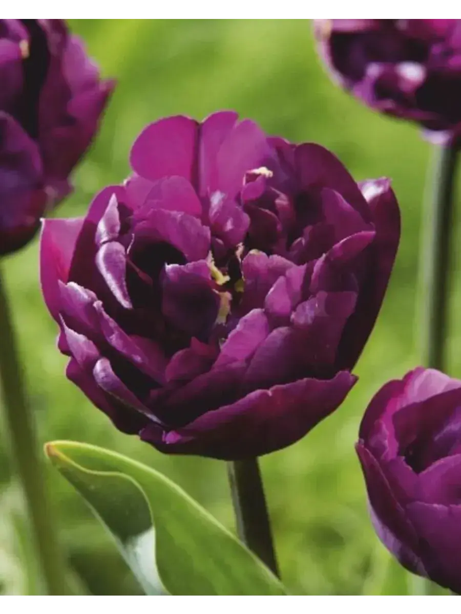 Тюльпан «Сайгон Дабл» (Saigon Double) — густомахровый сорт с пионообразными бутонами насыщенного тёмно-фиолетового, почти чёрного цвета. В полураскрытом виде внешние лепестки нежно-зелёные.