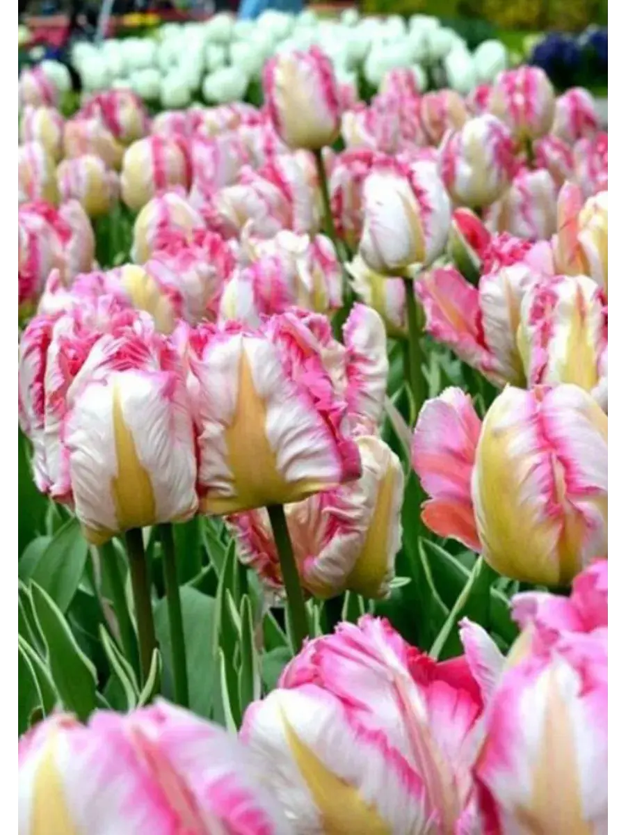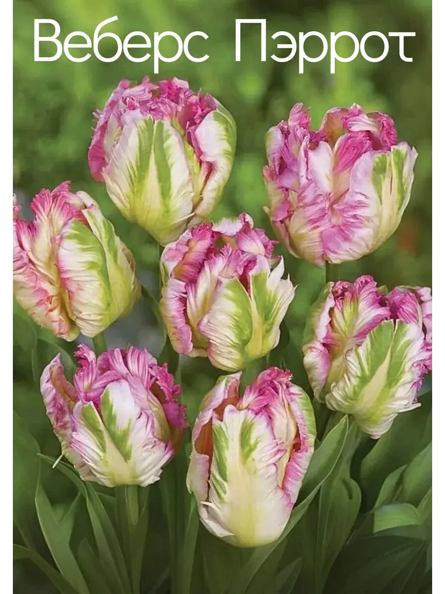 Цветет тюльпан WEBER'S PARROT в мае, образует яркое сочетание розовых, светло-сиреневых «вспышек» и основного фона цвета слоновой кости, дополняется всполохами зеленого пламени, причудливой формы бутон высотою 8-10 см. Листва с серебристым отблеском завершает этот уникальный образ. Продолжительность цветения - до 2-3 недель. Одна из самых захватывающих цветовых гамм в мире попугайных тюльпанов! Особенность этого сорта ошеломляющие как по цвету, так и по форме цветки с крылатыми слегка рассеченными и словно гофрированными лепестками напоминают о ярком оперении тропической птицы, в честь которой попугайные тюльпаны и получили свое название. Обладает тюльпан Веберс Пэррот средней скоростью роста, подходит как для озеленения и украшения клумб, так и для букетов, отлично растет на хорошо освещенном месте и в полутени. Красивый кремово-розовый цветок возвышается на крепкой ноге, высотой 45-50 см.