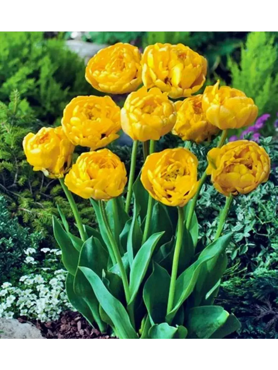 Универсальность: подходит для весенних бордюров, контейнерного озеленения, цветников у входной зоны и альпинариев. Особенно эффектно выглядит в сочетании с контрастными сортами — пурпурными, бордовыми или оранжевыми тюльпанами.