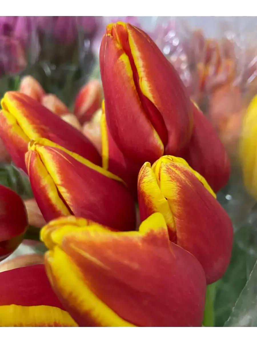 Тюльпан «Дэнмарк» - очень красивый сорт с уникальными бокаловидными цветами. Бутоны с диаметром до 5 см очаровывают своей окраской – лепестки насыщенно-красного цвета обведены яркой желтой каймой. Цветы безупречно держат форму, и даже после срезки долго не теряют своей привлекательности. Растение используется в декоре альпинариев, рокариев, клумб, парков и скверов.