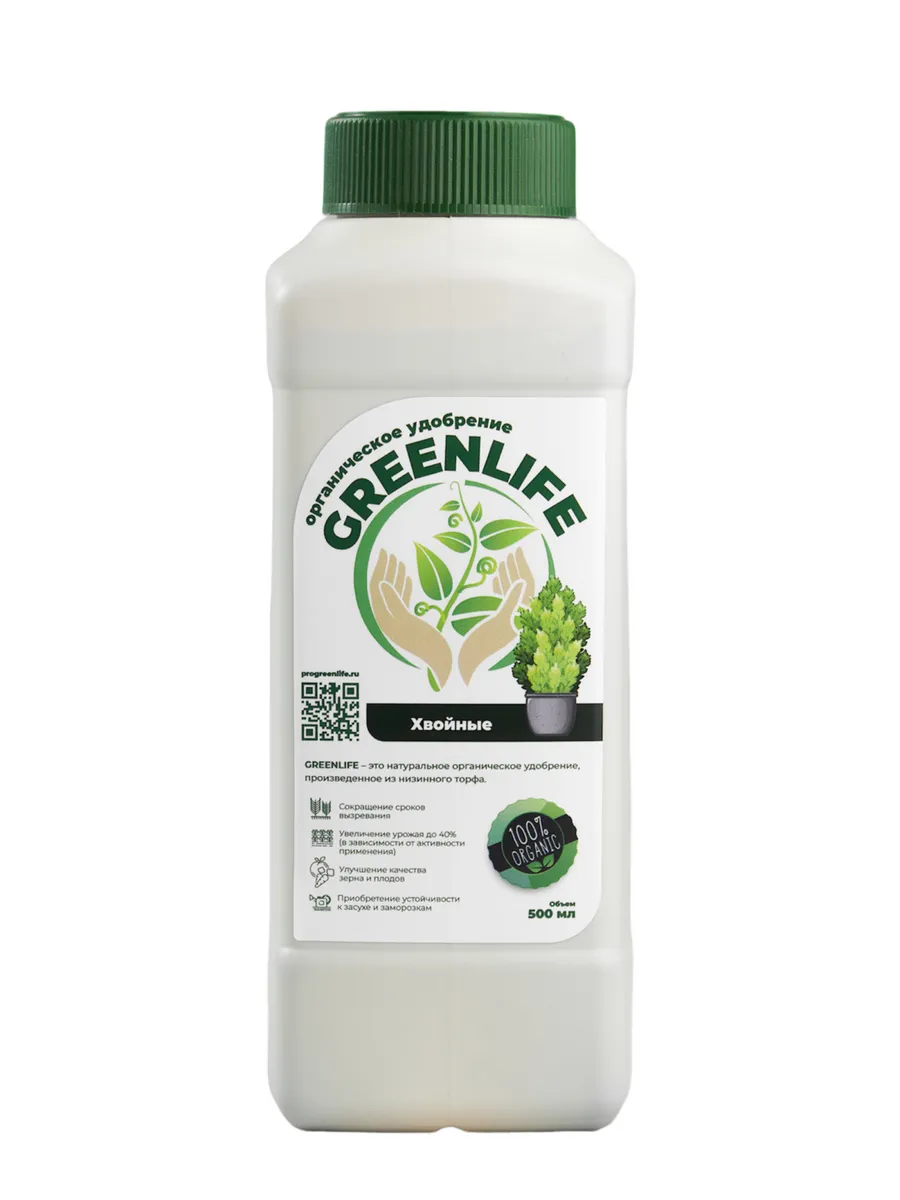 ""Способ применения"":Удобрение "Green Life" рекомендуется применять в период активного роста хвойных растений, начиная с весеннего периода и до конца летнего сезона. Для этого необходимо разбавить указанную дозу удобрения в соответствии с инструкцией на упаковке в определенном объеме воды и равномерно нанести на почву вокруг растений.Итак, органическое удобрение "Green Life" представляет собой эффективное средство для обеспечения здоровья и красоты хвойных растений. Благодаря своему натуральному составу и высокой эффективности, данное удобрение является незаменимым помощником для садоводов и любителей растений, стремящихся обеспечить оптимальные условия